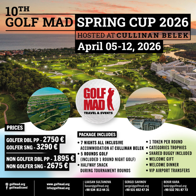 Golf Mad Travel & Events organisiert zudem renommierte Amateurveranstaltungen wie den Diplomatics and Business Cup, Paarturniere, die Turkish Open Week und maßgeschneiderte VIP-Golfreisen nach Großbritannien, Schottland und Südafrika. Darüber hinaus veranstalten wir mehrere Turniere, die zur World Amateur Golf Ranking (WAGR) zählen, insbesondere in der U21-Juniorenkategorie.