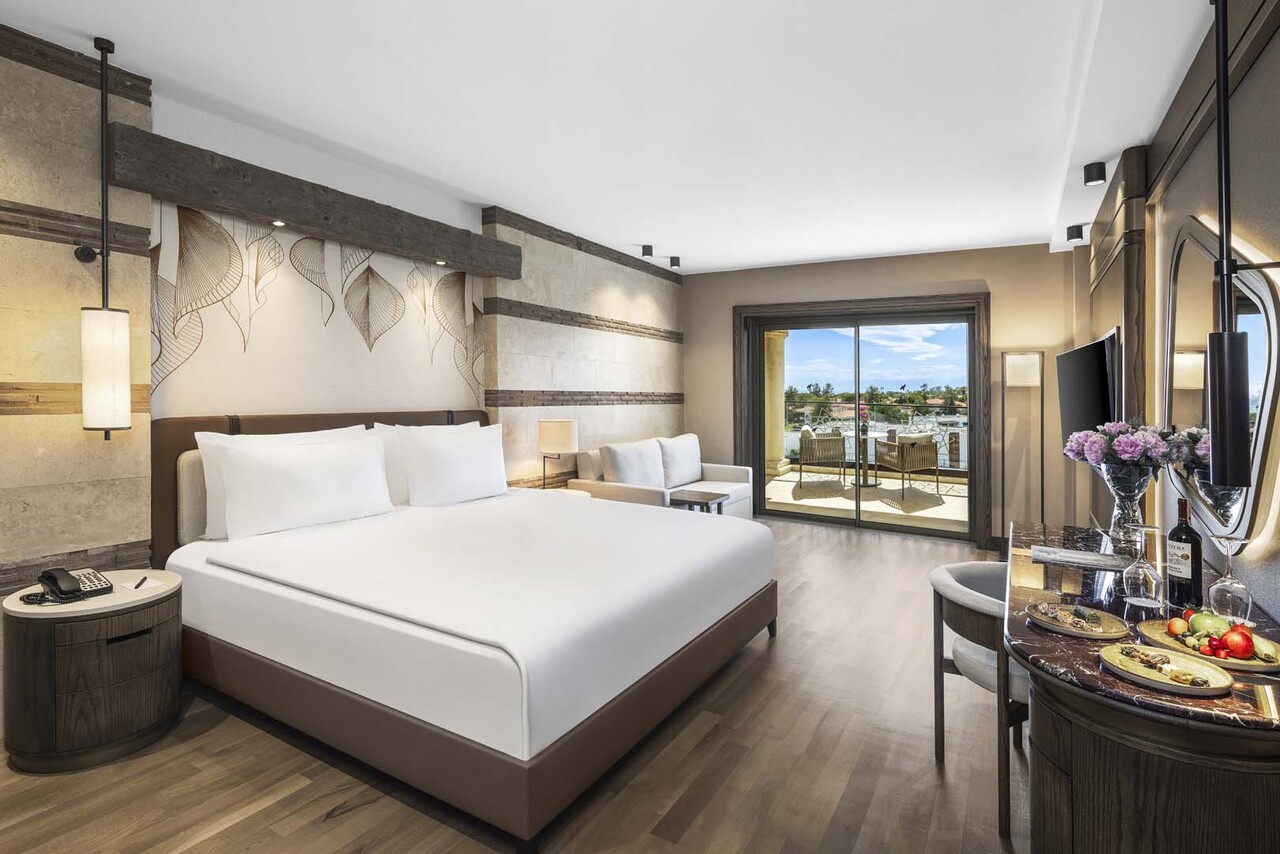 The spacious rooms of the resort are decorated in an elegant Seljuk style. Some of the rooms are found in the main building while others have their separate areas within the hotel grounds, offering splendid views of the Mediterranean Sea or the golf courses. They are all equipped with an LCD TV, internet, safety deposit box, minibar, tea and coffee setup, hairdryer, bathroom toiletries, bathrobes and slippers that will fulfill your needs throughout your stay.